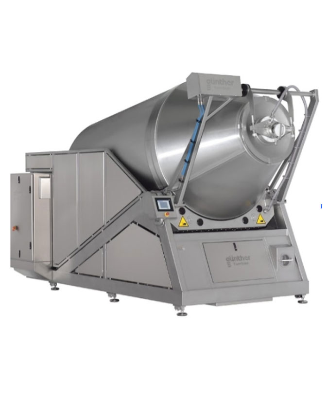 The GPS range of massagers and tumblers are available in a variety of sizes and are to designed to increase yield and improve product quality. The GPS tumblers are equipped with highly advanced controller systems that can be connected to a Günther network system (Job Pilot). The Job Pilot controls the entire production starting with brine mixing, injecting and yield control. Online access is possible.