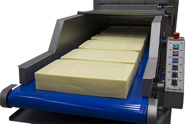 A versatile machine: pre-cuts cheeses and pieces of cheese into cubes that are suitable for grating. Accepts practically all cheese types as well as several cheese sorts, sizes and even waste cuts. The machine can be programmed in such a way that it provides a continuous flow of cheese to a grater. Available in various executions, depending on the cheese width.