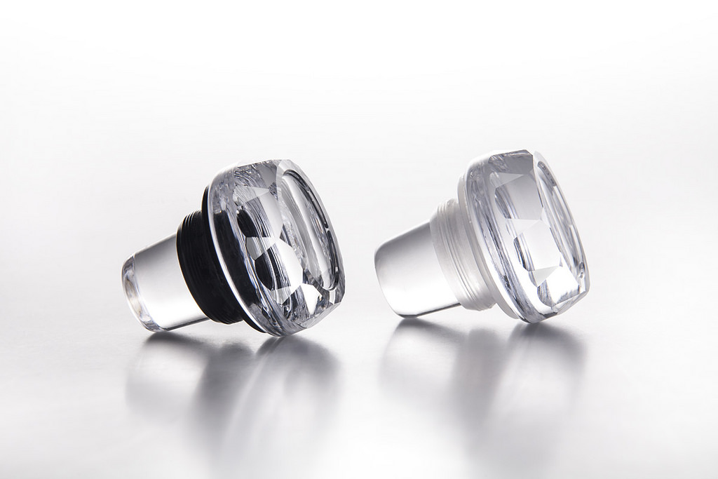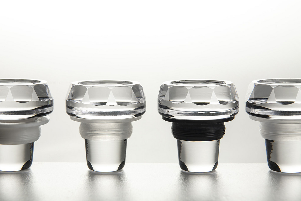 The Rhinestone stopper has been cut to resemble a semi precious stone, giving the stopper a cut glass finish – a very elegant solution for a sophisticated brand.