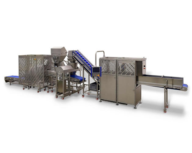 The SIGMR 400 is a fully-automatic line for shredding large volumes of cheese. This complete shredding line consists of a cheese cubing machine, a cheese shredding machine, a powder dosing system, a mixing drum, a control box, touch panel, line control and hygienic conveyor belts that are placed between the machines. Ideal for manufacturers of pizzas, meals and snacks.