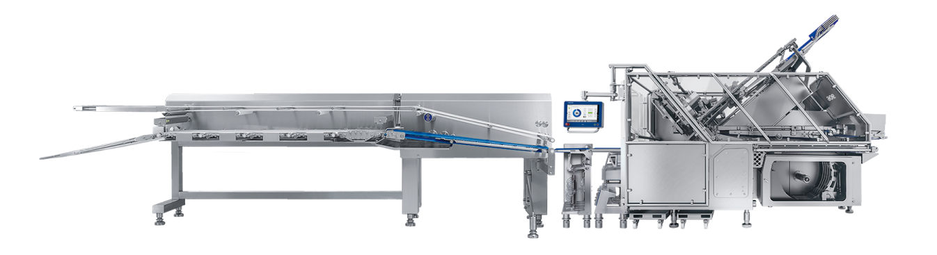 The Weber knifed-edged speed loader is a fully automatic belt loading system. This loading system is fully syndchronised with the packaging machine, automatically transfering the portions into the pockets of the machine.